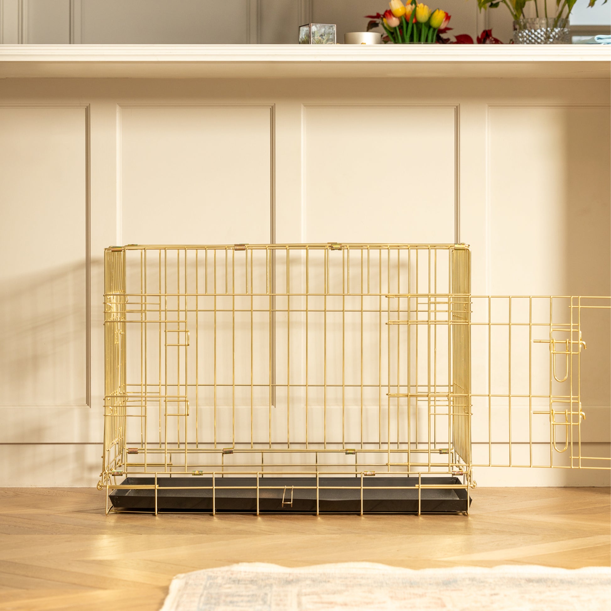 Lords & Labradors Heavy Duty Deluxe Flat-Folding Dog Crate, Gold